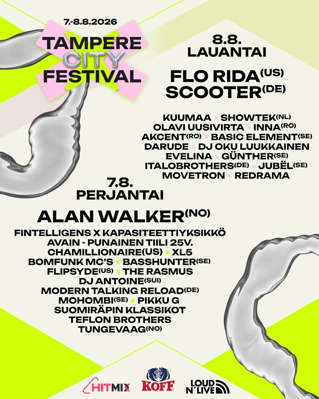 Vuoden 2026 artistit: Flo Rida (US), Alan Walker (NO), Scooter (DE), Fintelligens x Kapasiteettiyksikkö, Avain - Punainen Tiili 25 v., KUUMAA, Showtek (NL), Chamillionaire (US), Olavi Uusivirta, INNA (RO), XL5, Bomfunk MC’s, Basshunter, Flipsyde (US), The Rasmus, Akcent (RO), Basic Element (SE), Darude, Dj Antoine (SUI), Dj Oku Luukkainen, Evelina, Günther (SE), ItaloBrothers (DE), Jubël (SE), Modern Talking Reload (DE), Mohombi (SE), Movetron, Pikku G, Redrama, Suomiräpin Klassikot, Teflon Brothers, Tungevaag (NO).